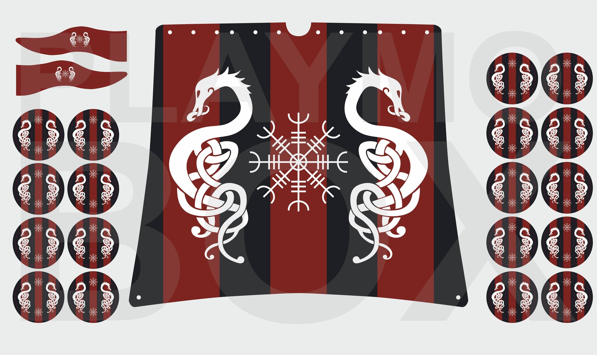 Set sail for glory with this rugged set of waterproof, pre-cut Viking sail, flag and shield stickers—designed to transform your Playmobil longship into a vessel worthy of Norse legends. Featuring fierce raven emblems, knotwork patterns, and battle-worn shields in bold Nordic colors, this set captures the spirit of raiders, explorers, and sea kings. The double-sided, professionally printed sail ensures your ship looks fearsome from every angle—perfect for plundering expeditions, fjord crossings, and epic sagas on stormy seas!
