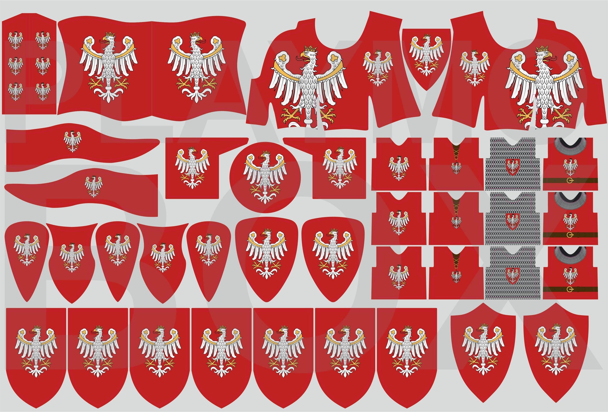 Celebrate the medieval legacy of the Kingdom of Poland with these premium, waterproof pre-cut stickers, meticulously crafted for collectors and history enthusiasts. Designed to fit Playmobil shields and torsos, these stickers reflect the heraldry, knightly culture, and national pride of one of Central Europe's most enduring medieval kingdoms.