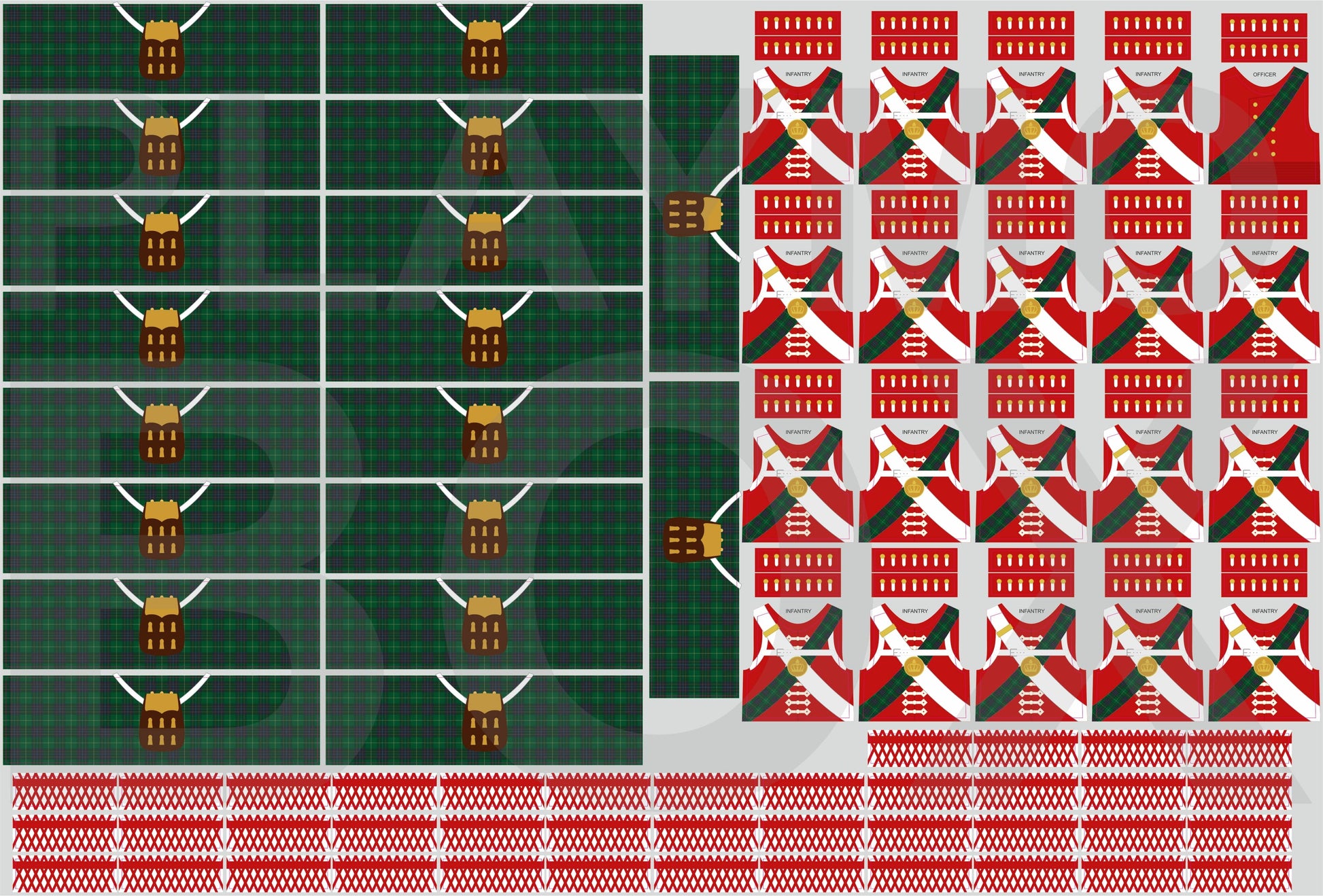 Bring Highland valor to your Playmobil troops with this set of high-quality, waterproof pre-cut stickers inspired by the iconic Scottish regiments of the Napoleonic Wars. From detailed tartan kilts and red cuffs to regimental socks and uniformed torsos, every piece is designed for a perfect fit—ideal for collectors, customizers, and history enthusiasts looking to capture the fierce pride of Scotland’s fighting men on the battlefield.