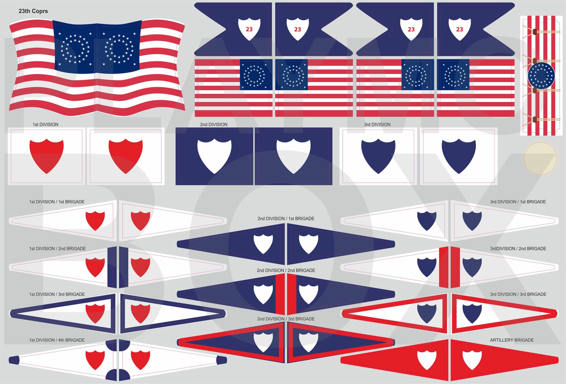 Advance with the stars and stripes! These high-quality, waterproof pre-cut stickers are inspired by the Union Army during the American Civil War. Perfectly crafted for Playmobil flags and drums, this set features patriotic regimental colors and historically styled drums—bringing the spirit of Lincoln’s army and the fight for unity to life with authentic Northern pride.
